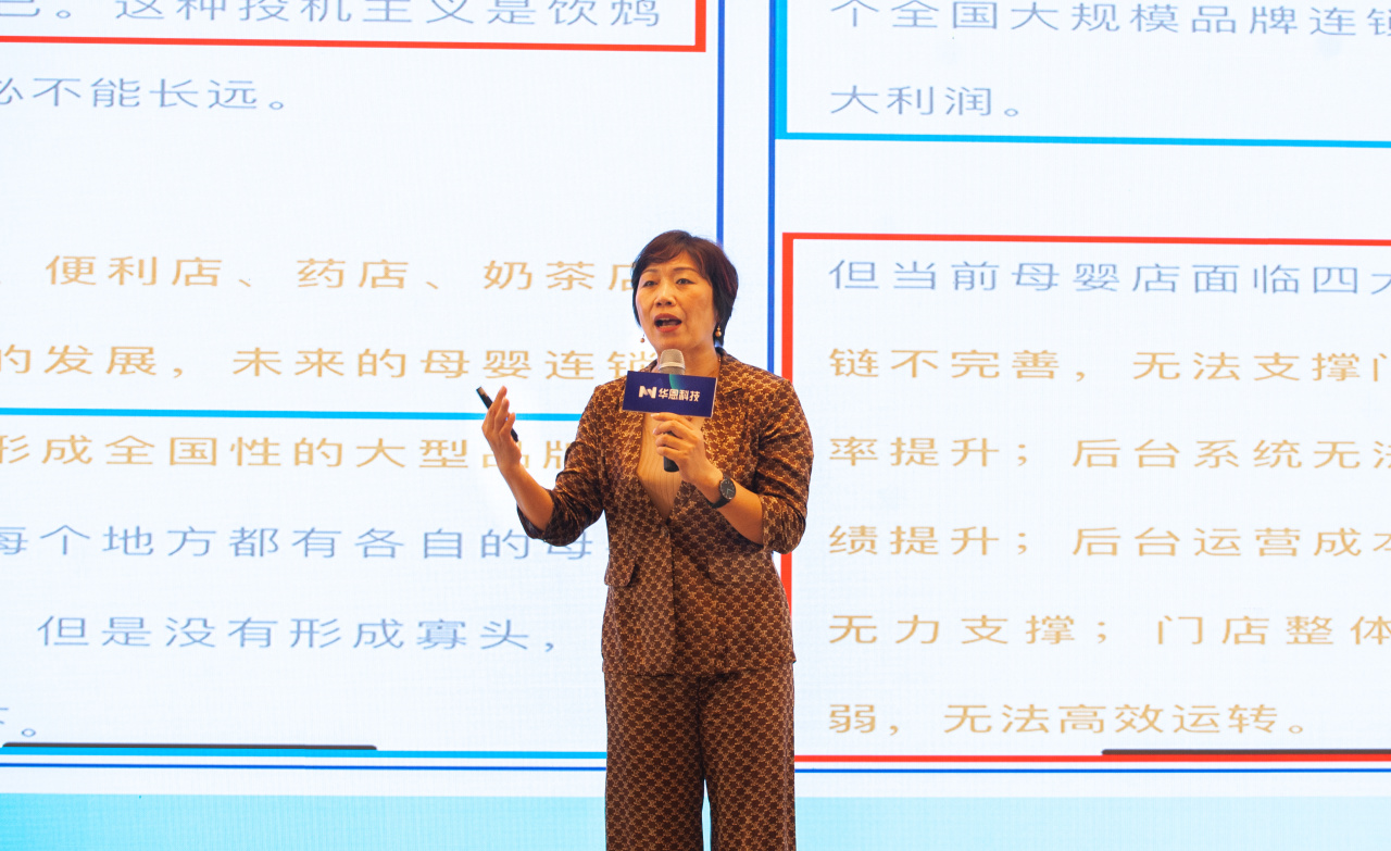 她以“面对当下大环境,母婴店如何蜕变重生”为题面向全场发问。她强调,母婴店如果不报团成为全国大连锁,这个业态就有可能面临着消失的风险。