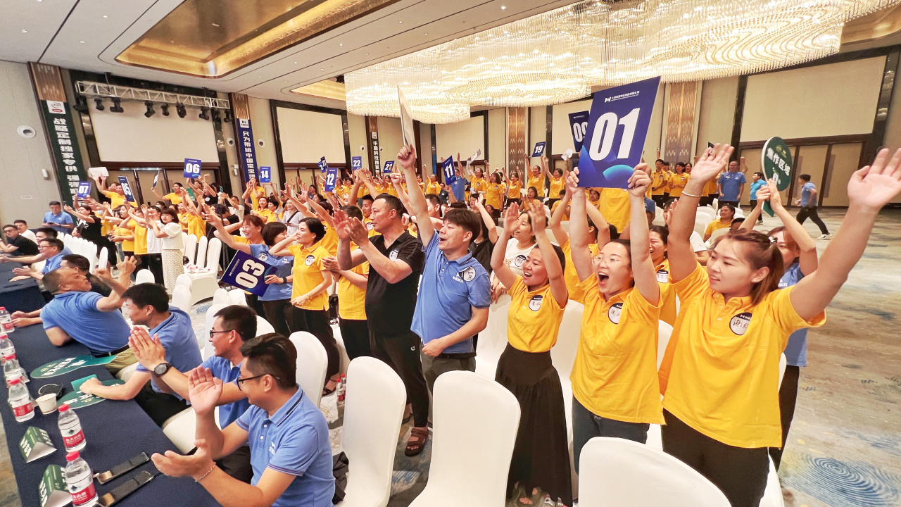 jjb竞技宝品牌创始人刘长燕登台动员,燃爆全场高昂士气。