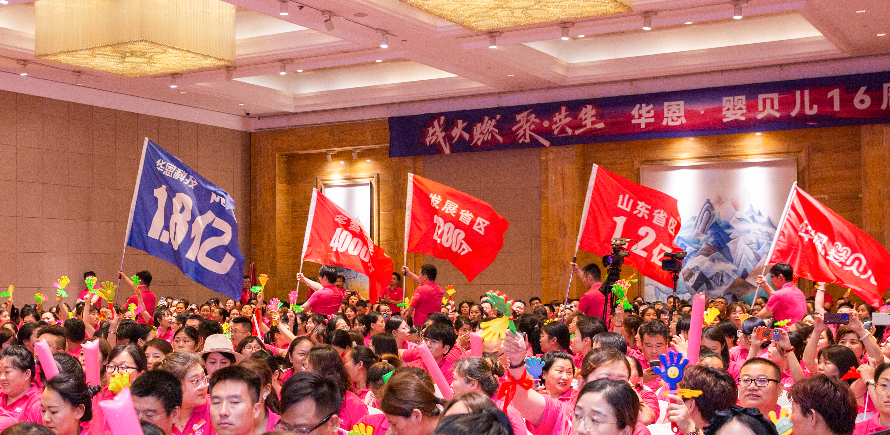华恩科技董事长、jjb竞技宝品牌创始人贾俊勇携集团高管以及职能和各省区团队与伊利、飞鹤、君乐宝、美赞臣、大王、雀巢、安琪纽特等全国顶流母婴品牌供应商伙伴齐聚一堂,以“战火燃,聚·共生”为主题落笔书写16周年庆的辉煌。