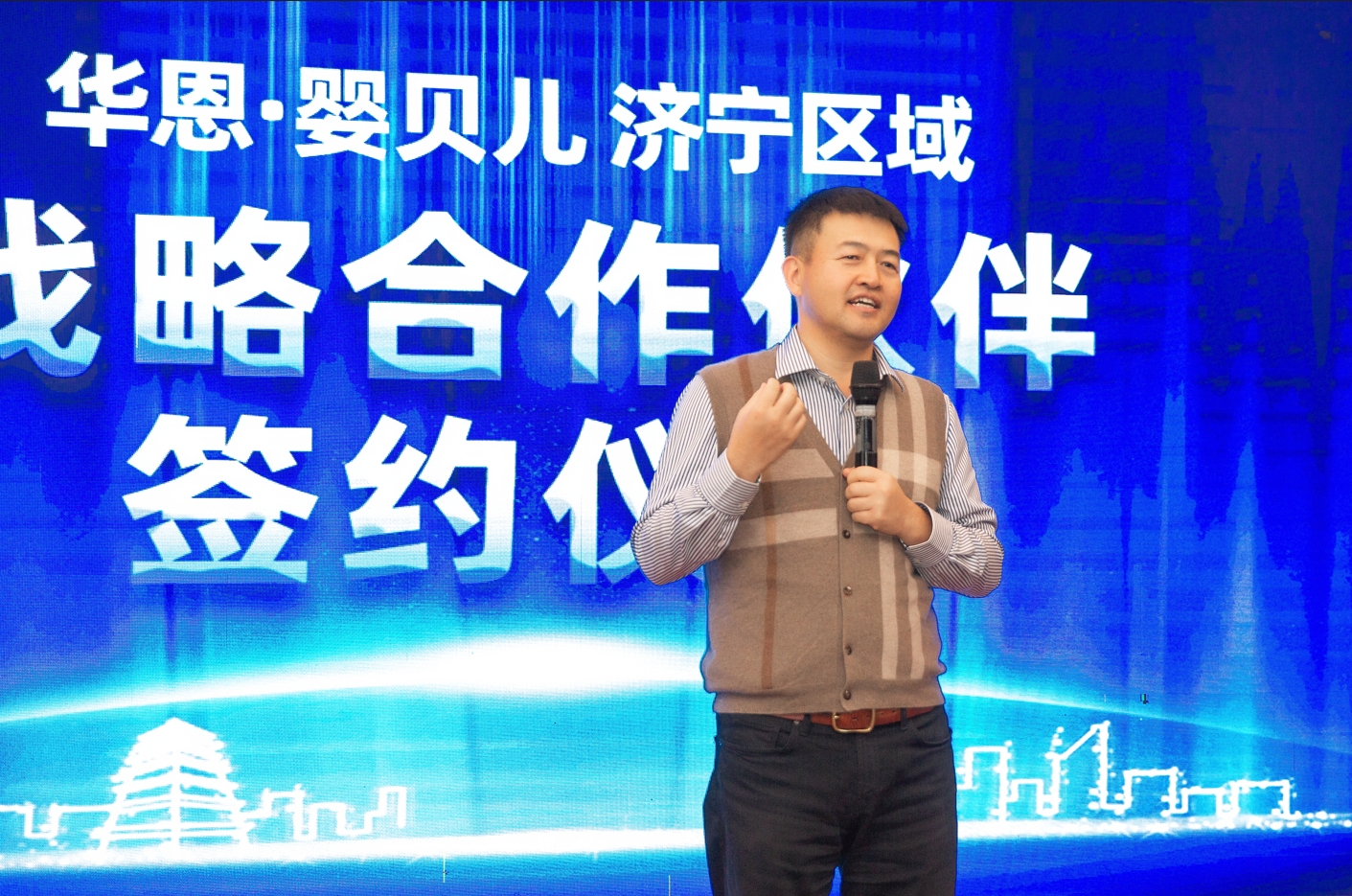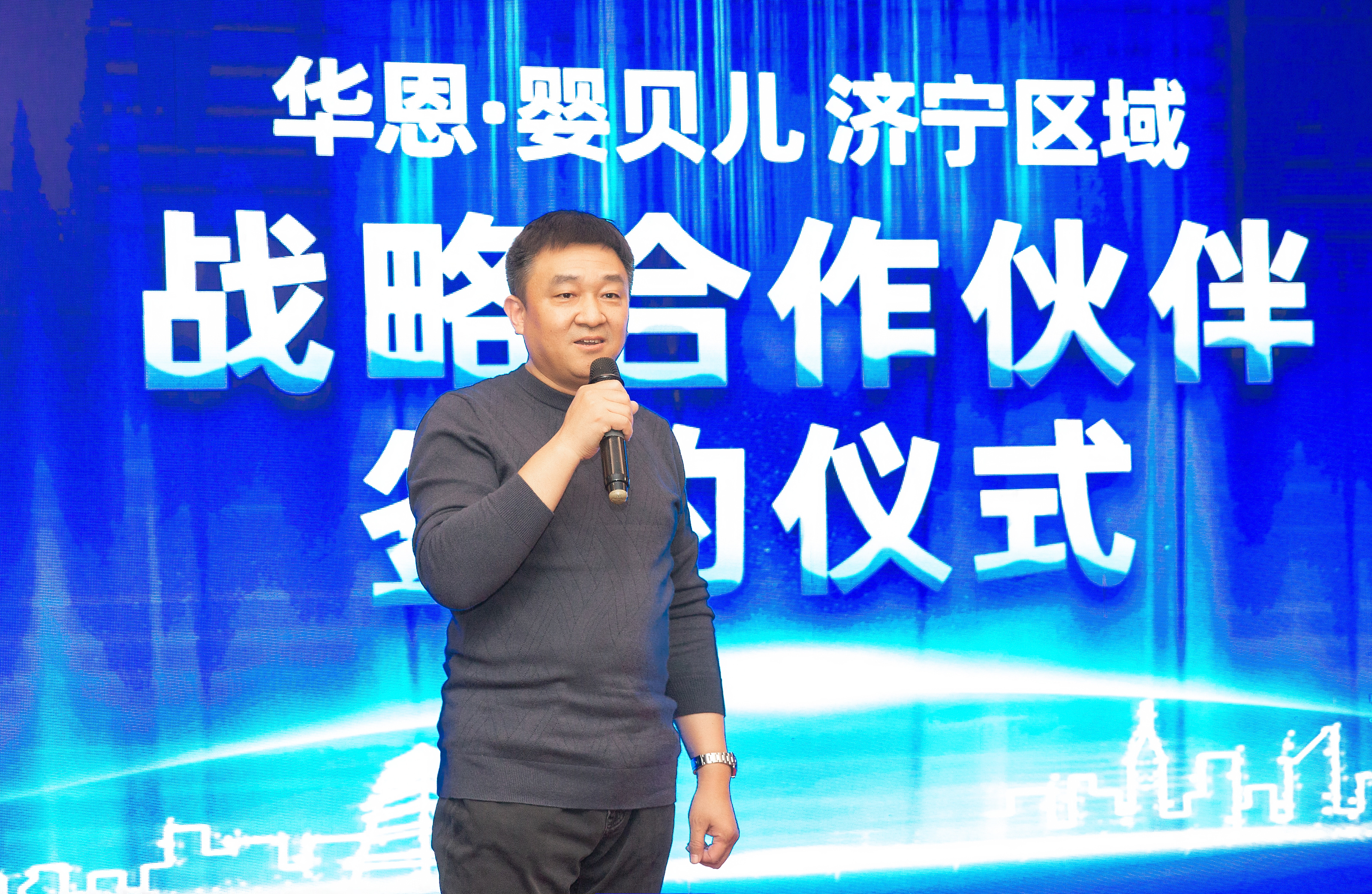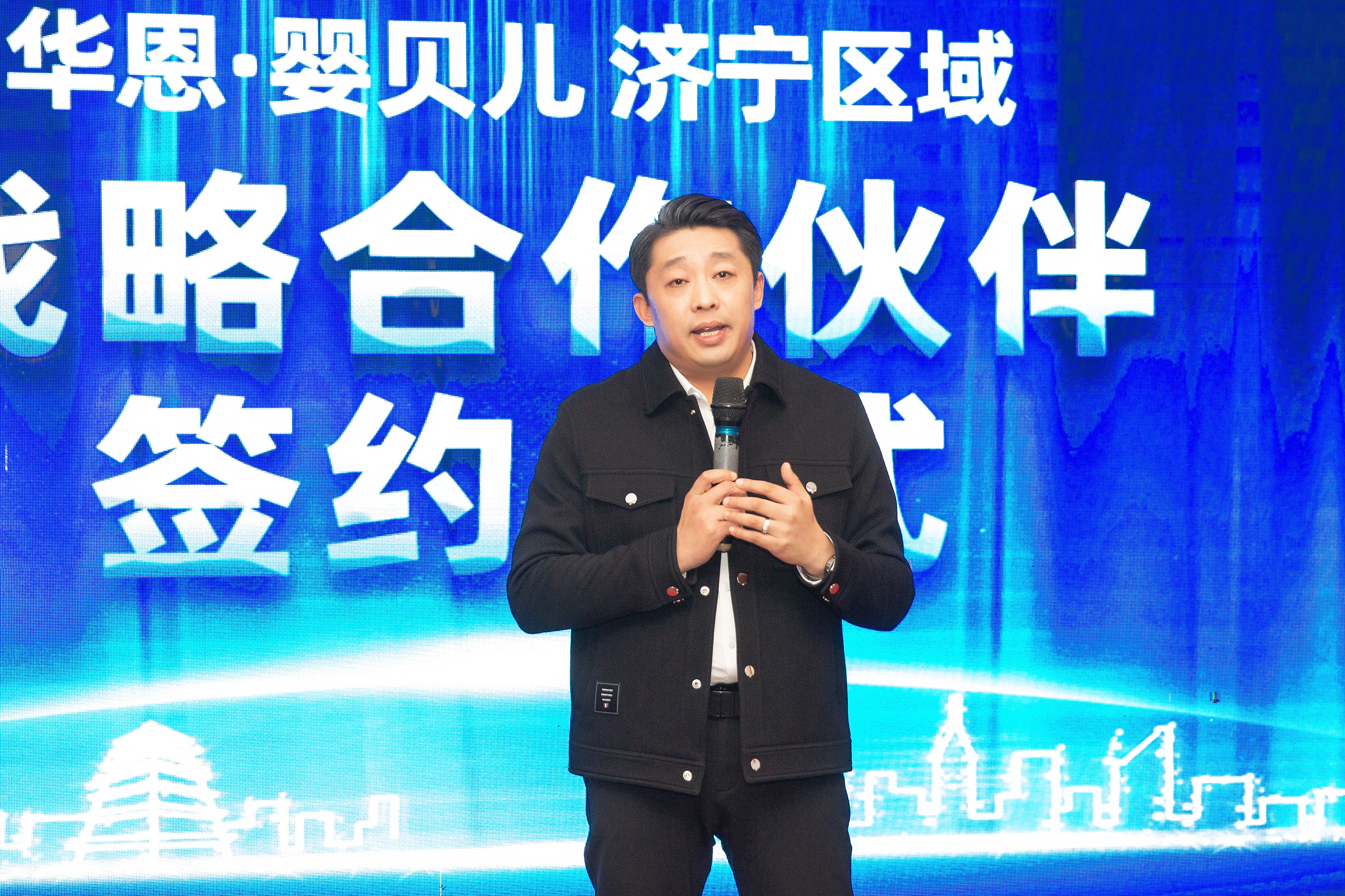 贾俊勇在致辞中首先表示非常感谢与大家共同见证华恩jjb竞技宝与济宁区域母婴行业伙伴的战略合作签约。