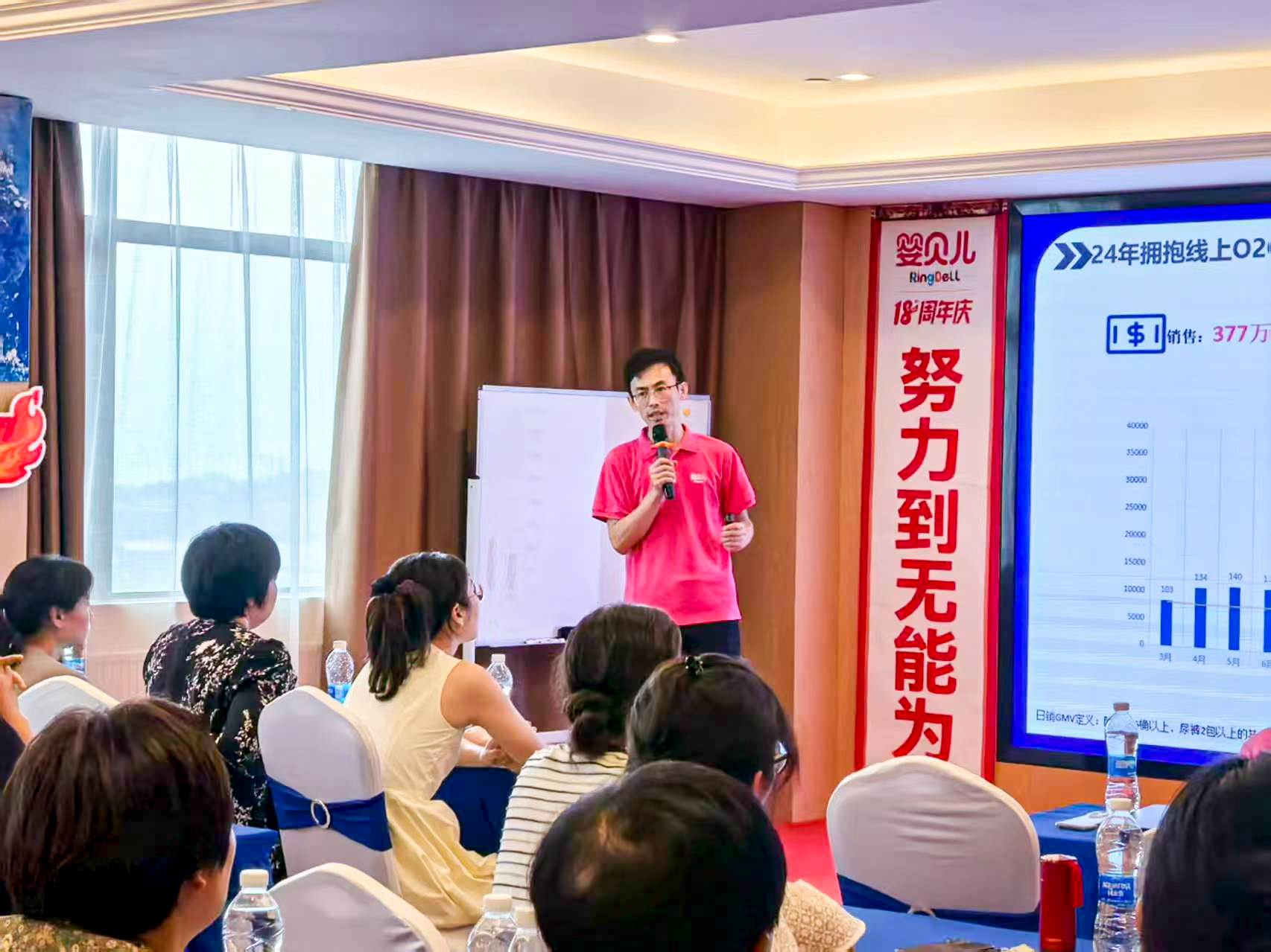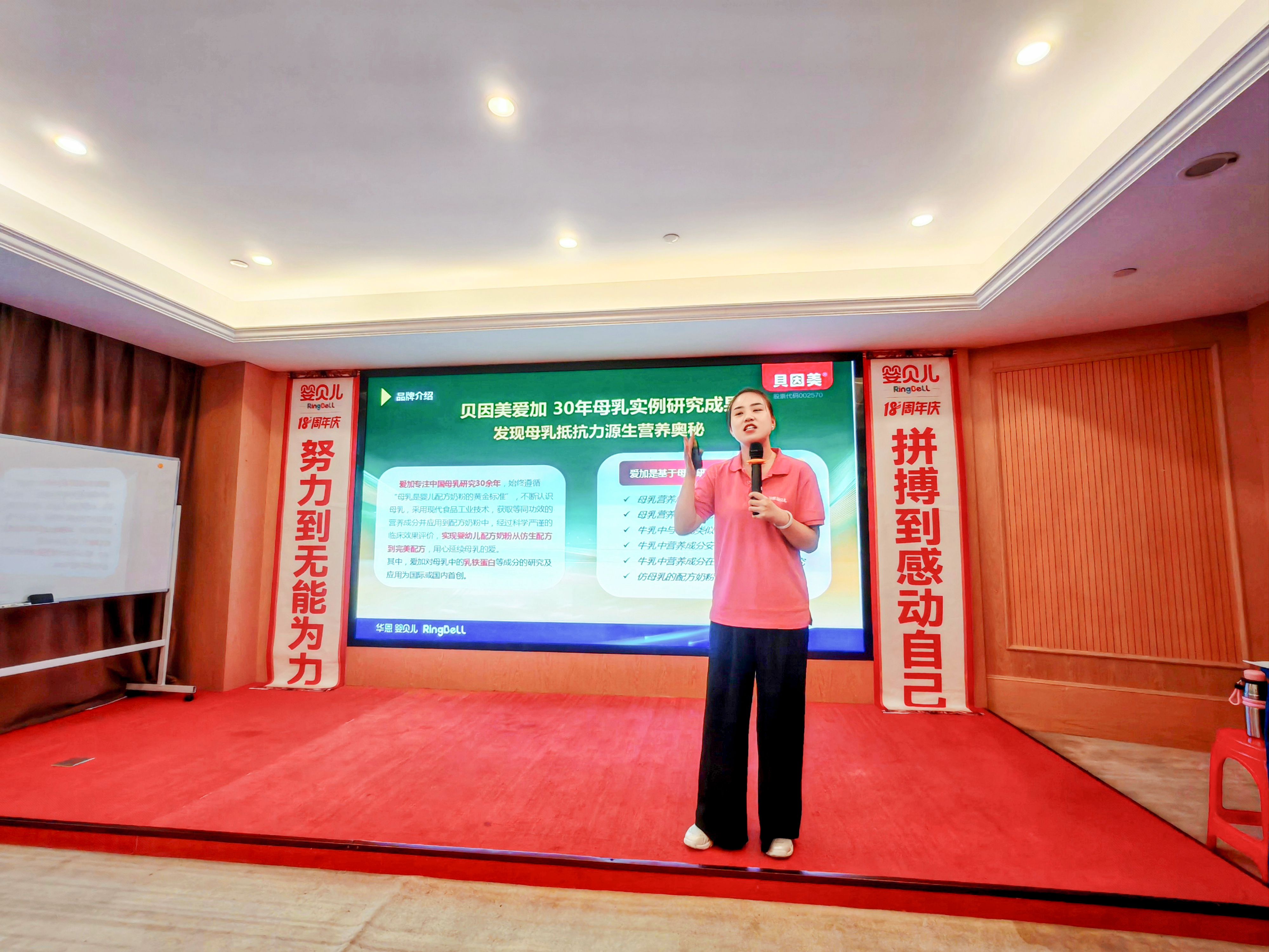 启动会上,拓展中心魏雪远详细介绍贝因美爱加御弘产品的核心卖点与竞争优势,并揭晓专属促销福利,为门店提供有力支持,为活动增添亮点。